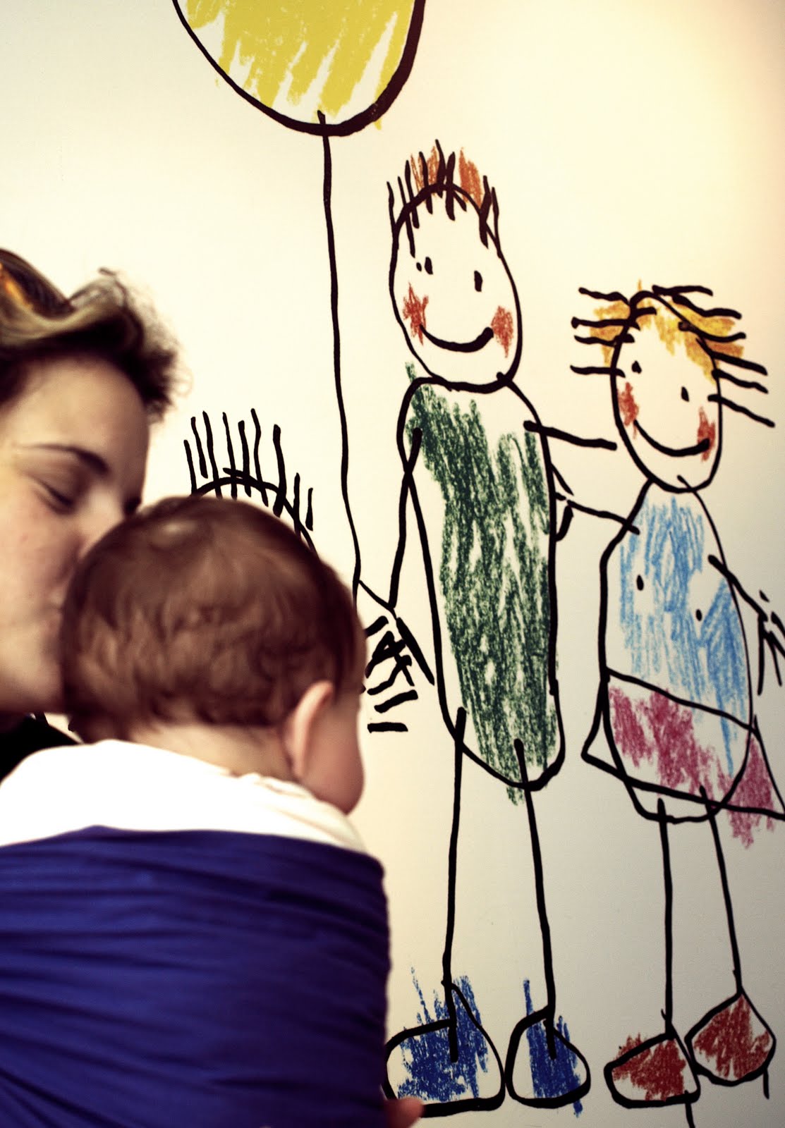In which well known place can you find this huge drawing the baby is looking at?