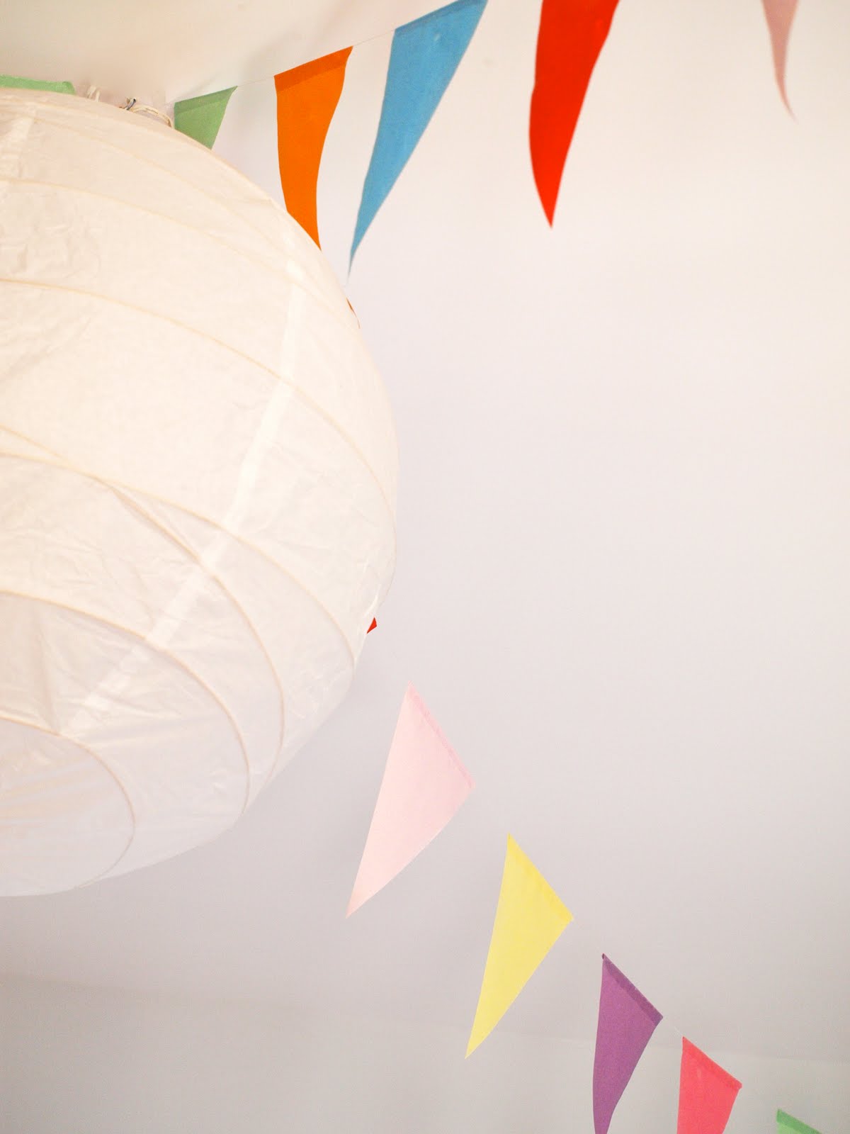 Είχα σκεφτεί τότε -ρομαντική μαμά- ότι θα τους άπλωνα χρωματιστά σημαιάκια στο ταβάνι και μια μεγάλη φούσκα φωτιστικό να τους φτιάχνει η διάθεση όταν κοιτούν ψηλά.