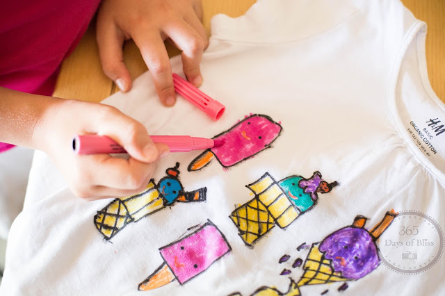 Βάλαμε μέσα στο μπλουζάκι ένα ξύλο κοπής για να μην περάσει η μπογιά από κάτω, αλλά και για σταθερότητα.